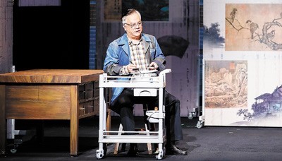 舞台设计是这部戏的灵魂所在。我们摒弃了传统戏曲繁复的布景,转而以“古画”为空间核心。舞台被划分为多个块面,修复室的红案、张伯驹的书房等皆以画框式的结构呈现。当修复师在红案前伏案工作时,舞台的块面感与人物内心的专注形成共振:工匠的每一次落笔,既是对古画的修复,也是对自身文化使命的确认。