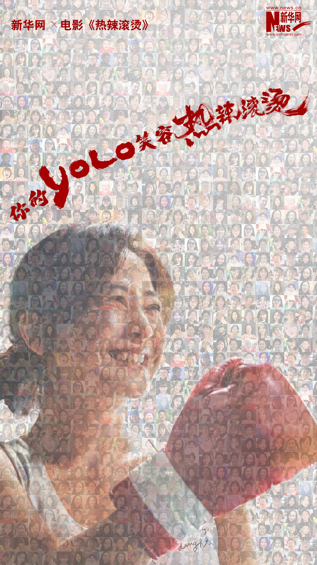 新华网&《热辣滚烫》发布YOLO联名海报---??电影《热辣滚烫》在春节档吸引了无数目光,让很多观众理解了“Youonlyliveonce”的真正含义,也让更多人懂得了如何“爱自己”。新华网与电影《热辣滚烫》联合征集了网友的YOLO笑容,共绘成为